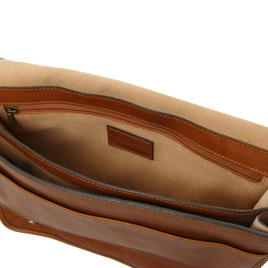 Crafted from premium matte full-grain vegetable-tanned leather with hand-stained detailing, this messenger bag embodies refined elegance for the discerning gentleman. The A4-compatible design accommodates daily essentials with ease, while the adjustable leather shoulder strap ensures comfortable carry. Inside, a spacious main compartment and secure zipped pocket keep your belongings organised. A timeless accessory that seamlessly transitions from boardroom to weekend pursuits.
