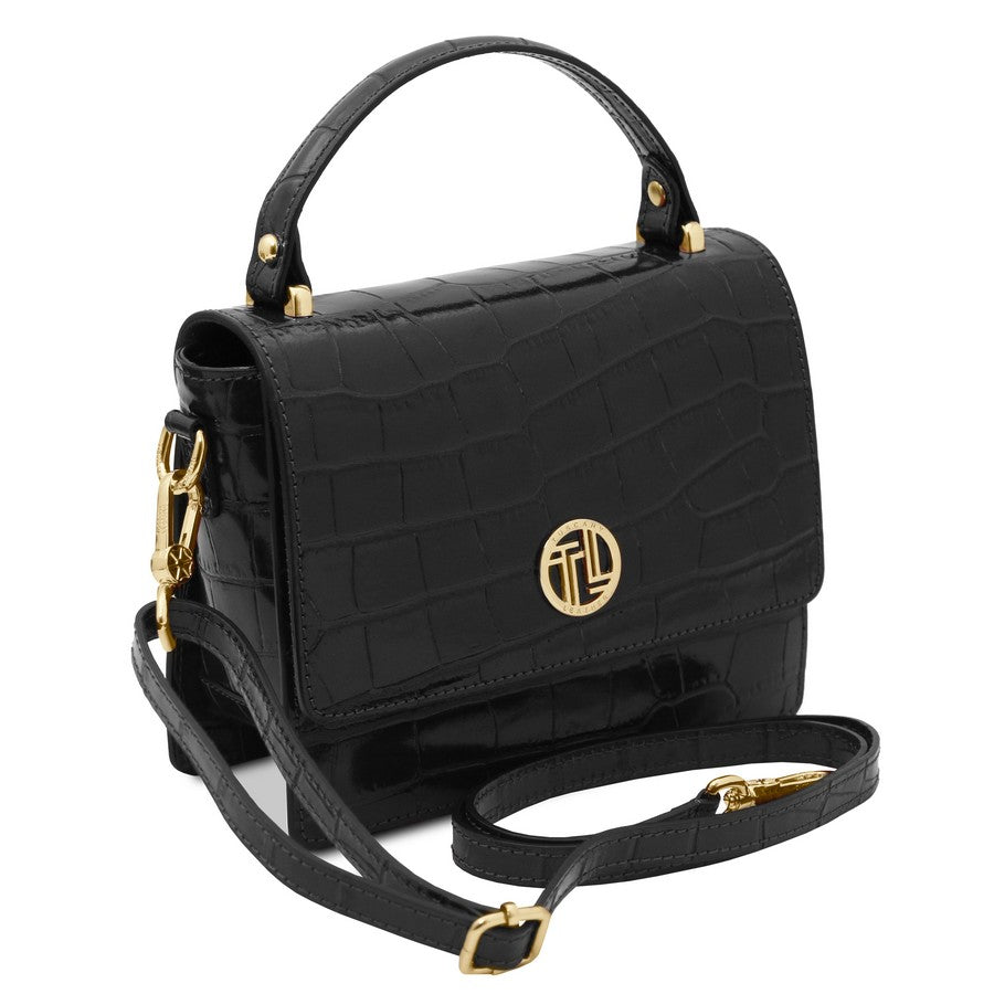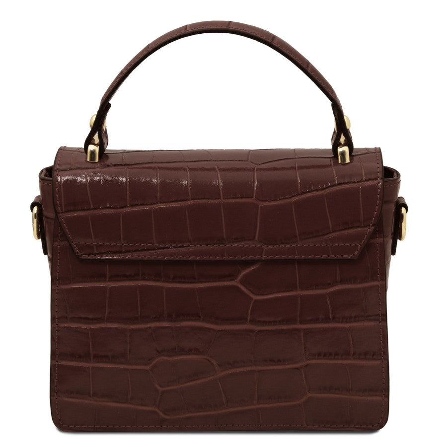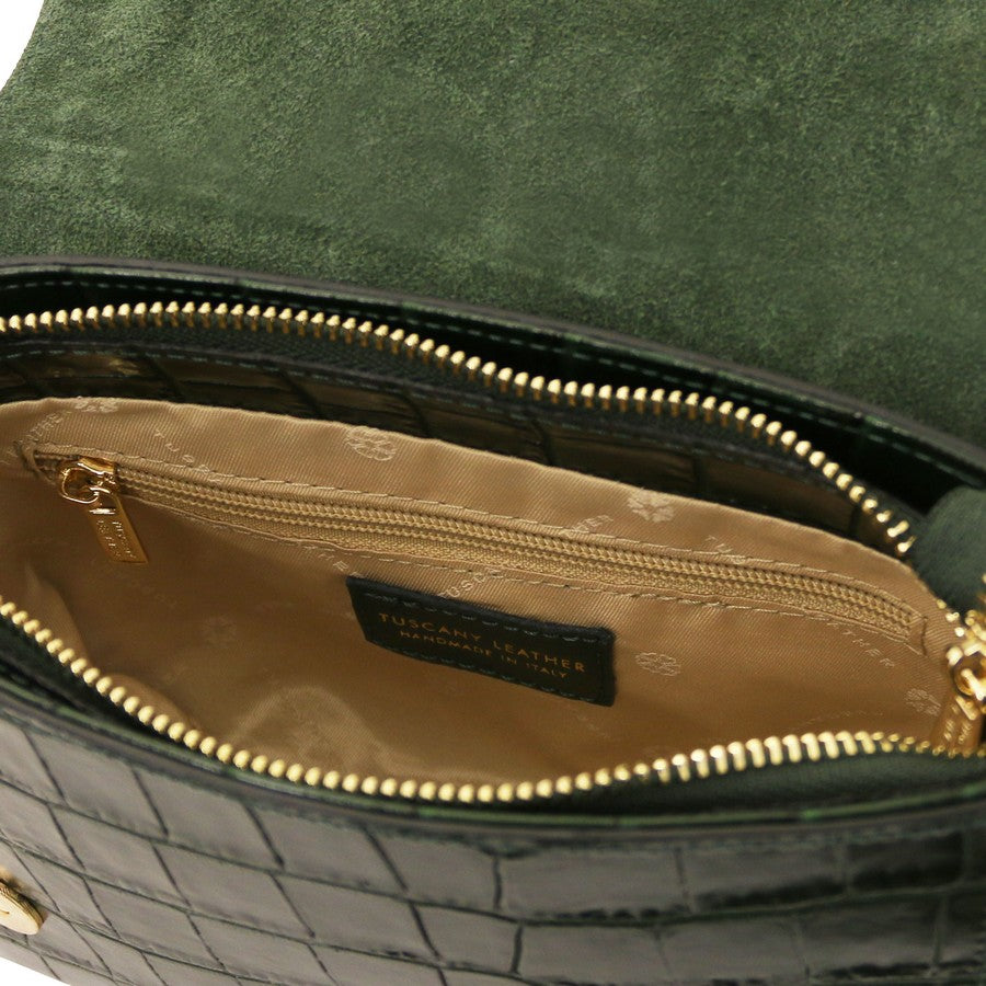 Tuscany Leather Small Croc Print Handbag