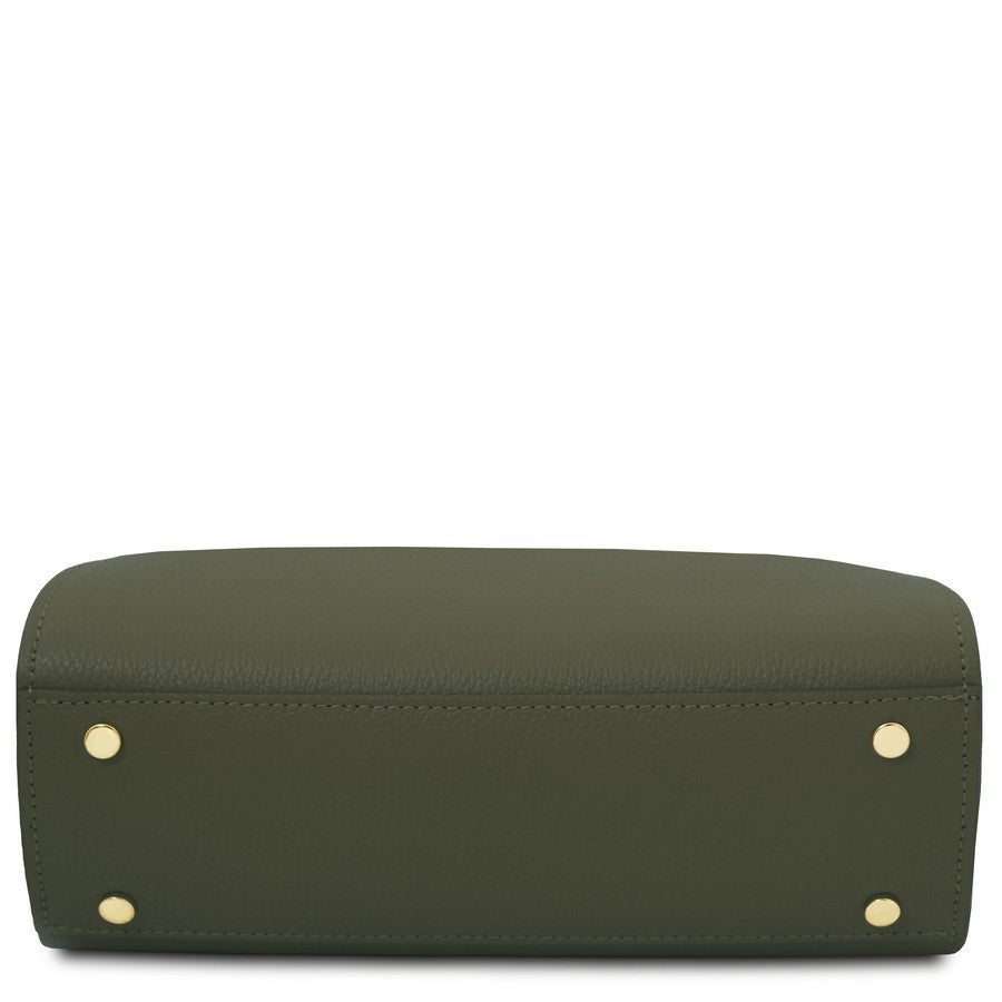 Indulge in luxury with our Leather Tote. Handcrafted from premium pebbled leather, its semi-rigid structure exudes elegance and durability. The spacious single compartment, open pocket, and secure zip pocket offer effortless organization. The detachable and adjustable leather shoulder strap provides versatile carrying options. Adorned with gold-tone hardware, this chic tote is the perfect everyday accessory.