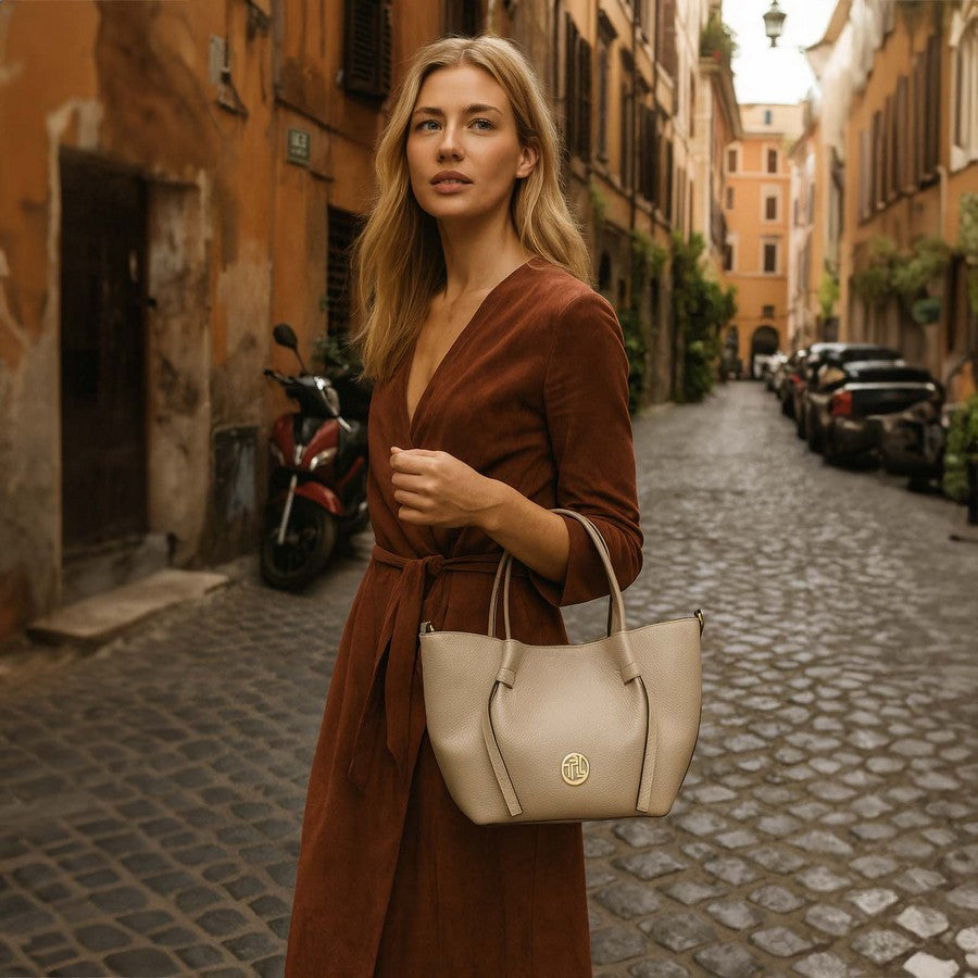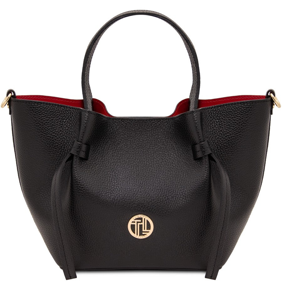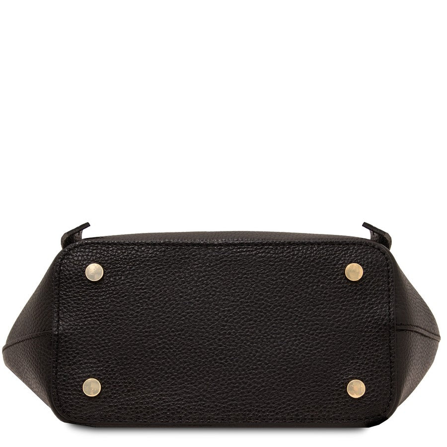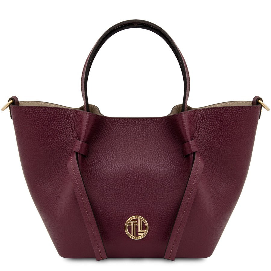 Enhance your daily sophistication with this Italian handbag, expertly crafted from pebbled leather to present a polished, semi-structured form. Its generous interior includes a detachable inner compartment and a central zip pocket, allowing for organized storage that easily accommodates the essentials. Featuring protective metal feet and elegant gold-tone hardware, this bag combines durability with refined style. The zip closure and adjustable, removable leather shoulder strap ensure secure and versatile wear. This handbag seamlessly merges practicality with elegance, adding subtle luxury to your ensemble.