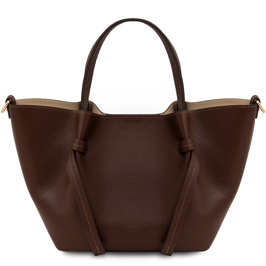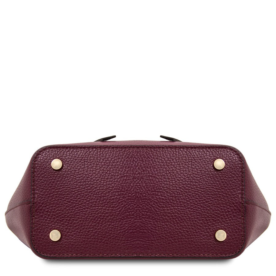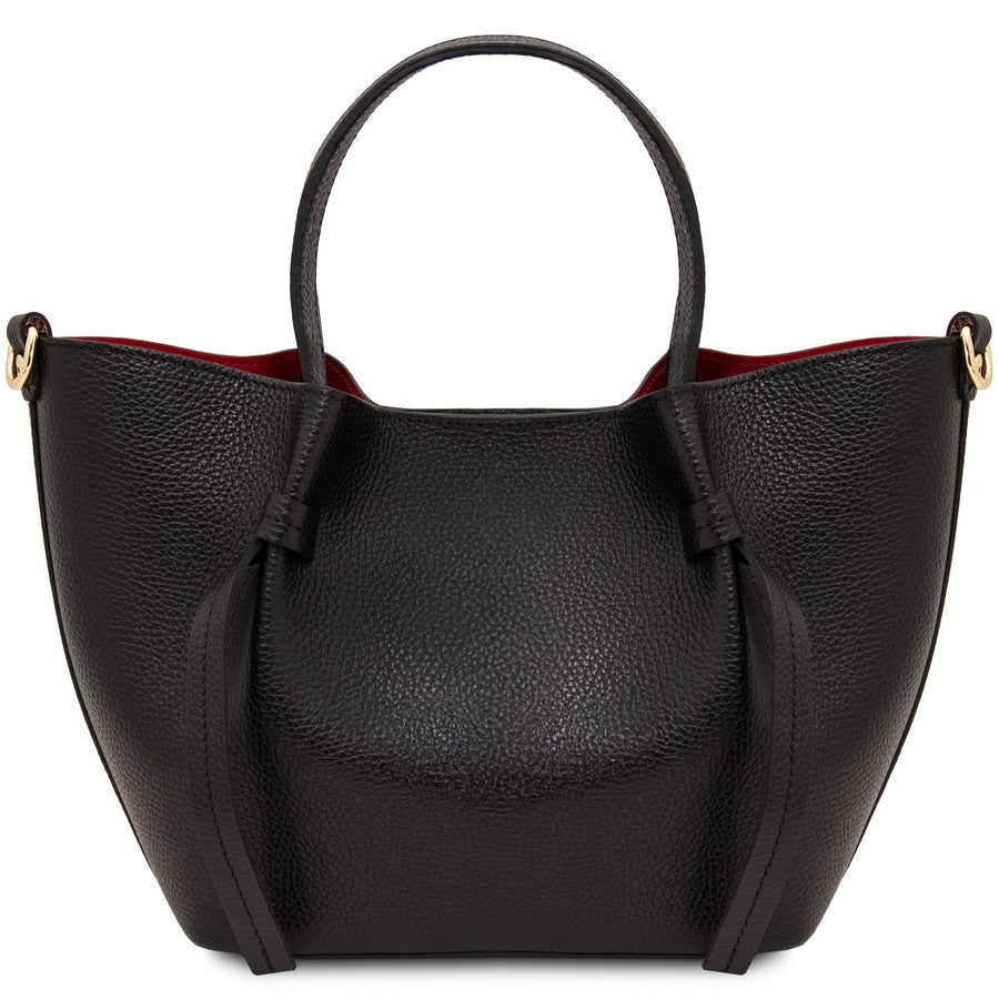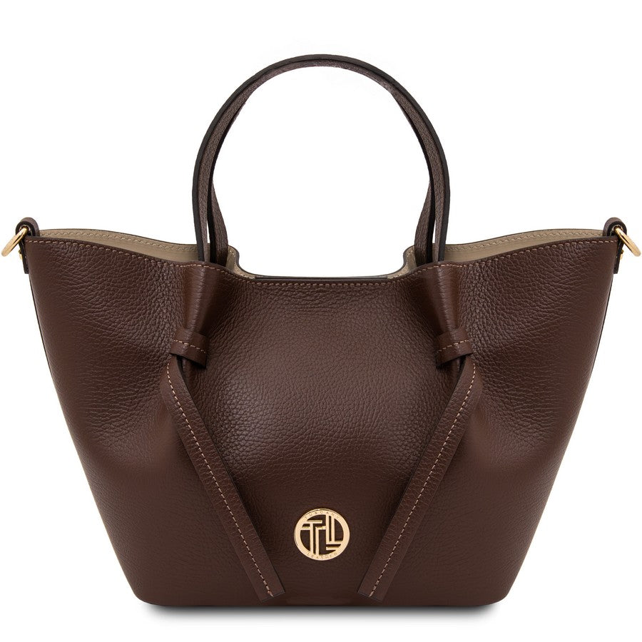 Enhance your daily sophistication with this Italian handbag, expertly crafted from pebbled leather to present a polished, semi-structured form. Its generous interior includes a detachable inner compartment and a central zip pocket, allowing for organized storage that easily accommodates the essentials. Featuring protective metal feet and elegant gold-tone hardware, this bag combines durability with refined style. The zip closure and adjustable, removable leather shoulder strap ensure secure and versatile wear. This handbag seamlessly merges practicality with elegance, adding subtle luxury to your ensemble.