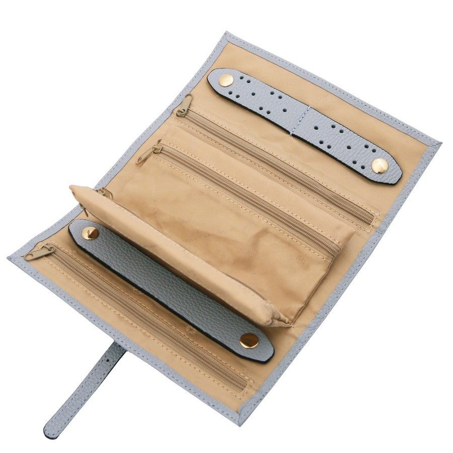Keep your jewellery and trinkets safely stored with this beautiful jewellery organiser. Made from Italian hammered leather, this organiser is easy to roll up in order to keep those special pieces safe in your favourite handbag when out and about or you can proudly display on your dressing table.