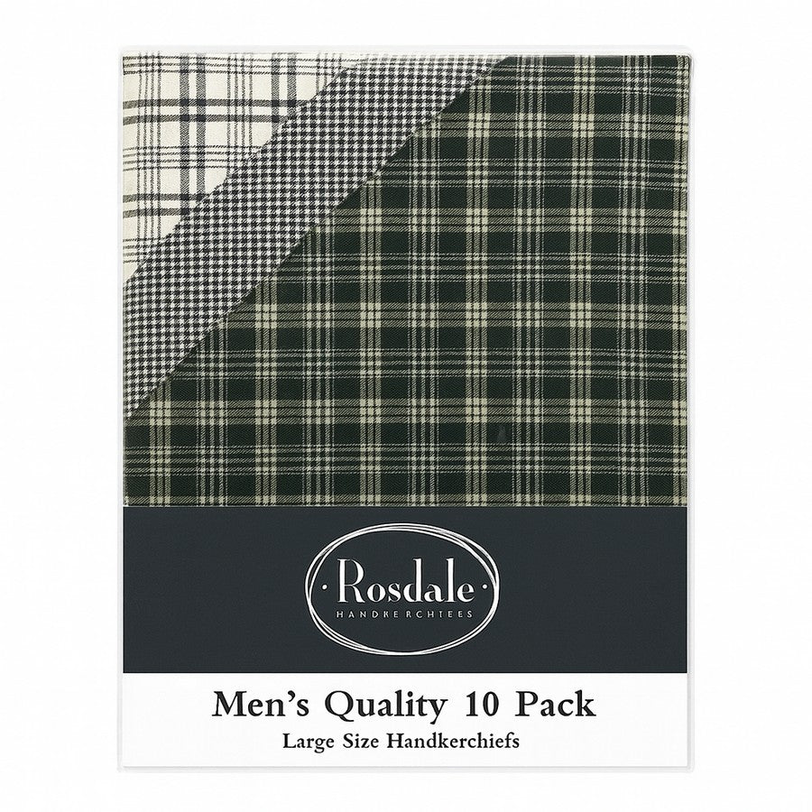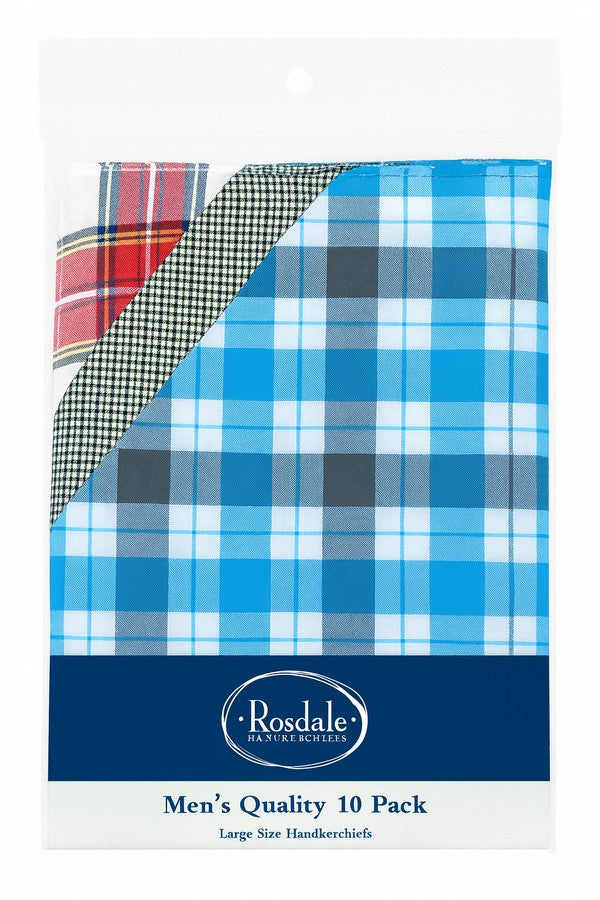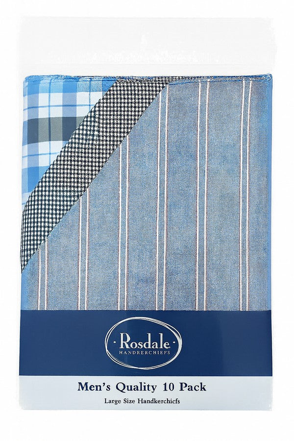 This distinguished collection of Men's Quality Handkerchiefs 10 Pack presents an elegant addition to a gentleman's accessories. Meticulously fashioned from premium cotton fabric, this set of ten handkerchiefs showcases timeless design elements. Suitable for both quotidian necessities and formal affairs, they combine longevity with effortless maintenance. These handkerchiefs offer practical functionality - elevating any masculine attire with understated sophistication. A consummate choice for personal indulgence or as a thoughtful presentation to others.
